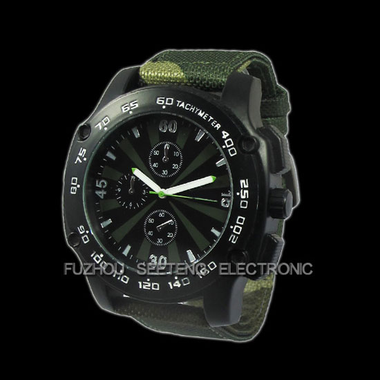 This is a canvas watch coming with a green band and a black case. The watch movement is sophisticatedly made to offer accurate time telling performance. Made of quality canvas, the watch band can withstand daily wear and tear.