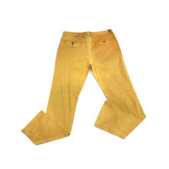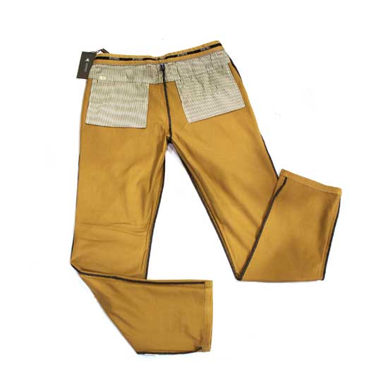 Displayed is a pair of men's casual pants in the color of camel. The outside of the pants features seam binding while the inside seam comes with a clean finish. Made mainly of cotton, this pair of pants is comfortable and absorbs sweat well, leaving you dry and cool throughout the day.