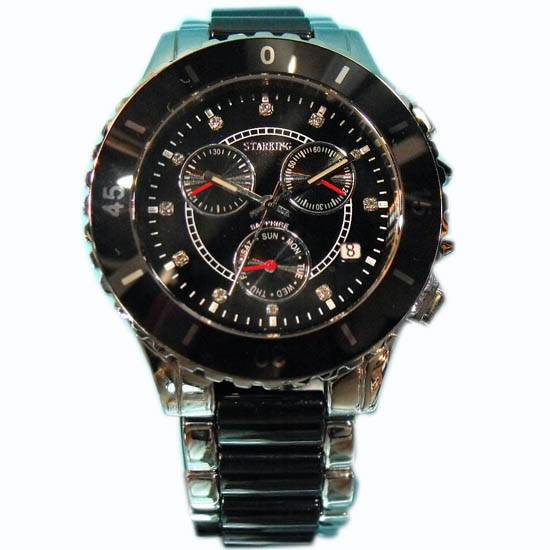 Featured is a men's chronograph watch with 3 subdials. It comes with a 2-tone watch band in a ceramic and stainless steel construction. This stunning timepiece will add a distinguished look to your wardrobe.