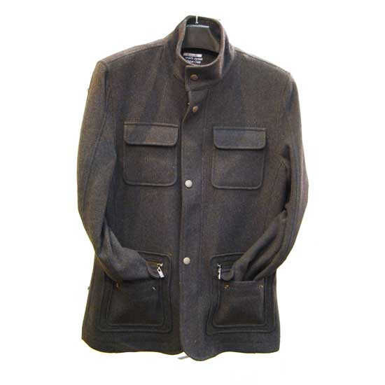 This men's coat features four patched pockets with a high neck. Boasting a slimming shape, this coat falls right at the hip for a less bulky look. Present the cosmopolitan spirit in this modern overcoat.