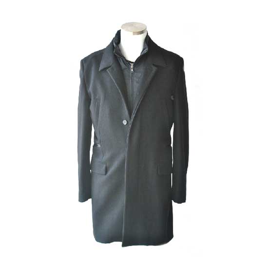 This men's coat features a tasteful Italian design and cutting. The soft and warm coat boasts blended construction of wool and polyester. It is designed with a notched collar and a single-breasted front.