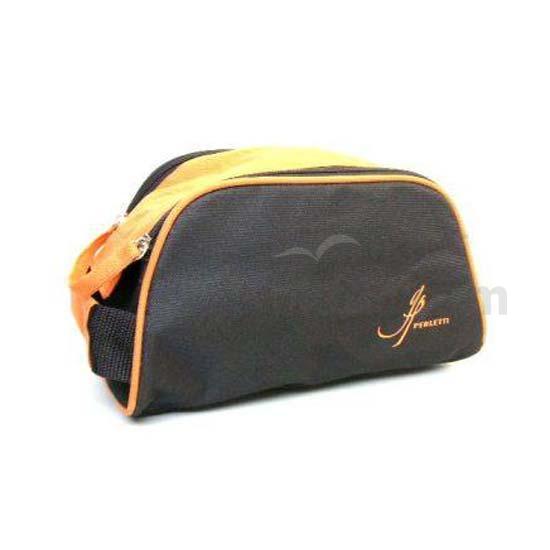 The zipper cosmetic bag is specifically designed for men. It comes with a gray-colored body with orange rim and logo. Made of top-grade polyester, this cosmetic bag is soft and washable.