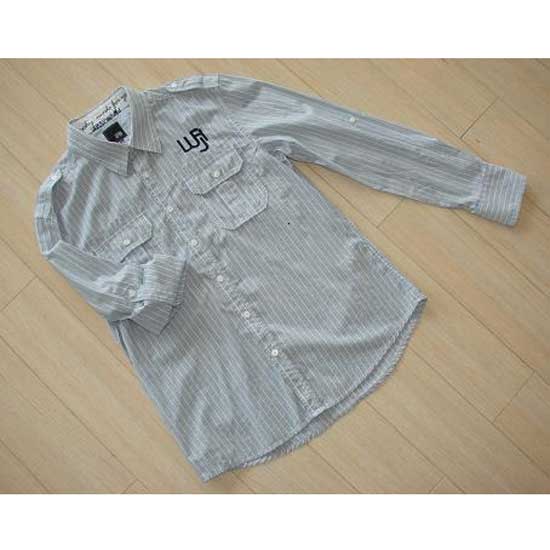 The men's long-sleeve shirt features a notched collar, two front pockets and an embroidered logo. The sleeves can be rolled up and buttoned up to offer a different wearing style. This shirt with striped patterns is suitable for casual wear.