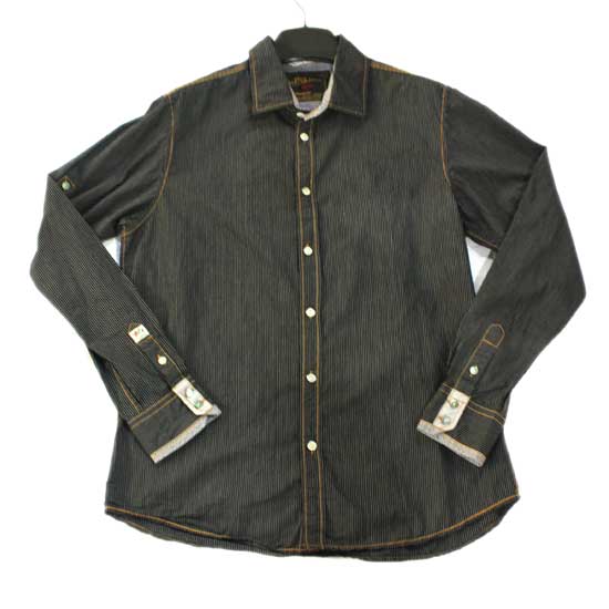 The men's shirt features contrasting golden-tone linings throughout. The white-colored rimming on the sleeves adds a dash of style. Update your wardrobe with this versatile and basic shirt.