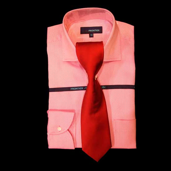 This solid hued men’s shirt is constructed from pure cotton offering utmost wearing comfort. It comes with a chest pocket on the right for convenient carrying small items like ID cards. This classy men’s shirt looks stylish with a red tie.