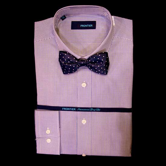 This men’s shirt in a light purple tone comes with a classic checker look. It boasts pure cotton construction for enhanced wearing coziness. This decent cotton shirt looks fabulous with a dotted bow tie.