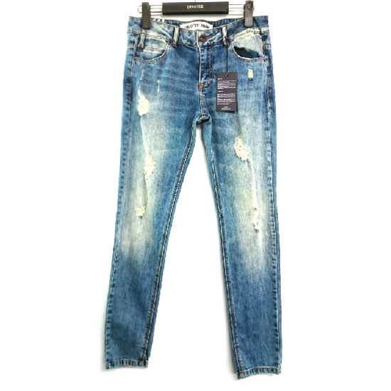 This is a pair of men’s denim pants with a stylish design. The washing effects and frayed accents add a touch of uniqueness to this design. This pair of pants goes well with a T-shirt for a cool weekend look.