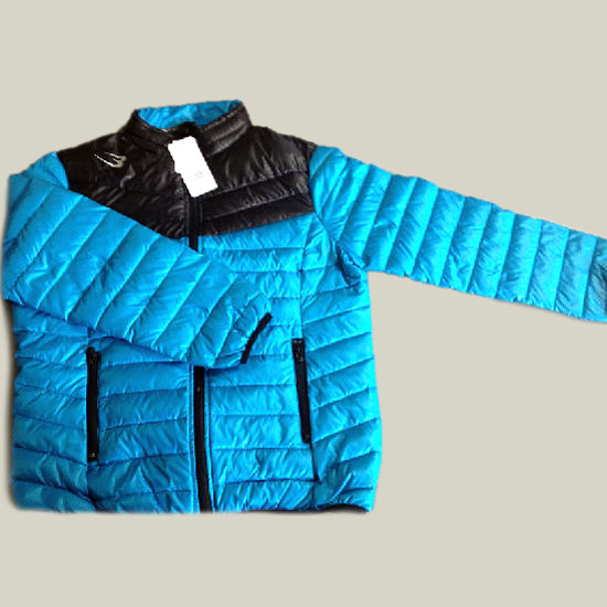 This stylish men’s jacket is filled with 90% duck down to ensure wearing comfort and warmth. It is designed in bright blue and black for an eye-catching look. This down jacket features long sleeves, a zipper closure and two side pockets.