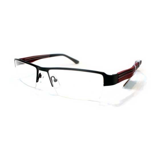 These tasteful men's eyeglasses feature a half-rim design. The quality eyeglasses are constructed of a titanium frame and TR-90 plastic temples. The adjustable nose pads guarantee comfortable wearing.