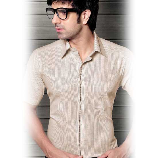 This men’s shirt with half sleeves features allover waving patterns with black lines on the collar and the packet. It is made of quality material to ensure coziness and comfort. This stylish shirt is ideal for formal occasions.
