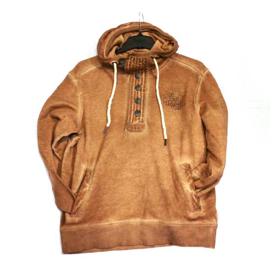 This men's brown hoodie is accented with a stand collar and a four-button placket. Made of 100% cotton, the hoodie boasts exceptional softness and breathability. The two side-entry pockets complete the design of this piece.