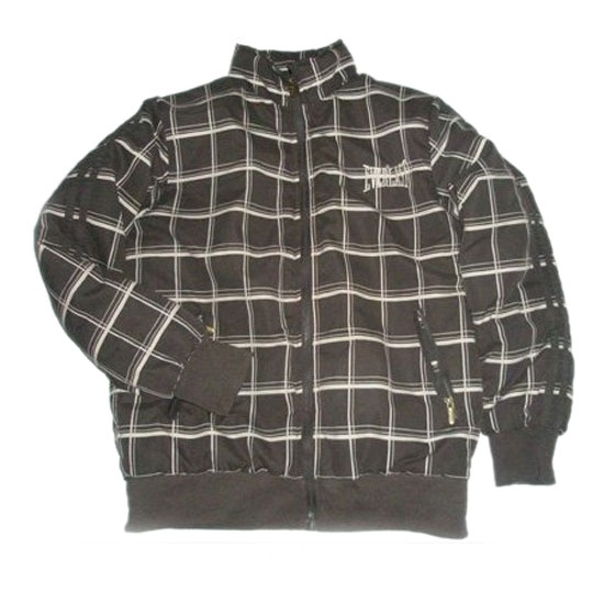 Displayed is a padded jacket made for the young fashionable men. The plaid patterns offer a touch of style. The mock neck design keeps your neck warm while the ribbed hem and cuffs give a flattering fit.