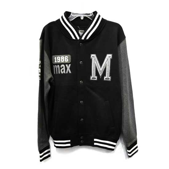 This men's jacket features bold logos on the chest and sleeves. The functional jacket is designed with a front button closure. The collar, hem and cuffs are designed with contrasting striped patterns.