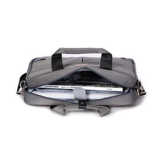 This men’s laptop bag in gray is suitable for 15.6" computers. It is constructed from jacquard nylon for sturdiness. This fashionable and versatile laptop bag can be held by hand or worn in a cross-body style.