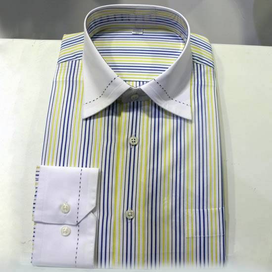This long-sleeve shirt features a notched collar and a buttoned placket. The chest pocket allows you to store essentials in a convenient manner. The white collar and cuffs match perfectly with the eye-catching yellow and blue stripes. This stylish shirt certainly is a great item to your formal wardrobe.