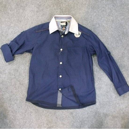 This long-sleeve shirt features a point collar and a round bottom hem. The contrasting white collar and buttons add style to the entire piece. This fashionable shirt is a perfect item to enhance your casual wardrobe.