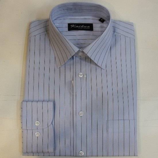The long-sleeve shirt featuring a delicate stripe pattern is embellished with glossy round buttons. It comes with a traditional point collar and a front button closure. Well-tailored with fine details, it is an ideal choice for matching with suits.