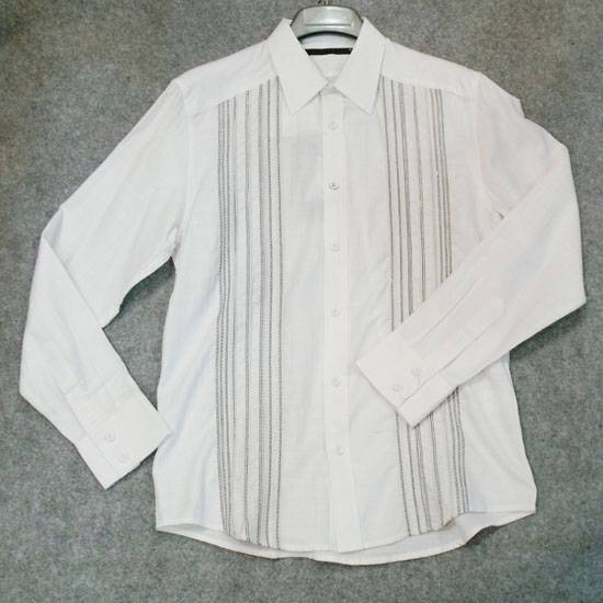 This stylish white shirt comes with a laydown collar. It has a classic seven-button front entry and a double-button cuffs. The dazzling pin-tuck styling on the front showcases a hint of uniqueness. Add a new look to your summer wardrobe with this versatile shirt.