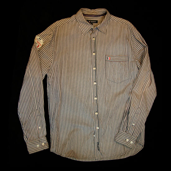 This men’s shirt is characterized by its clean striped pattern. It comes with a spread collar, a breast pocket, long sleeves and a button closure. The embroidered badge on the arm lends extra style.