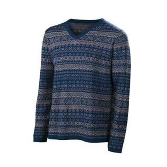 This men’s pullover features a classic navy Fair Isle pattern. It comes with a V-neck and long sleeves. Made of 100% fine Merino wool, this beautiful pullover promises optimum wearing comfort.