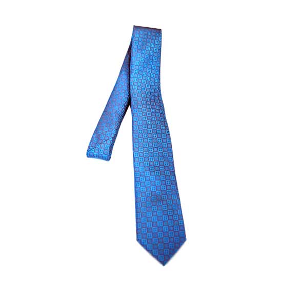 This is an elegant men's necktie that flaunts a modest design with blue checkered patterns. The 100% polyester construction gives it a soft and smooth texture. Clean and versatile, this men's necktie makes an ideal addition to your work wardrobe.