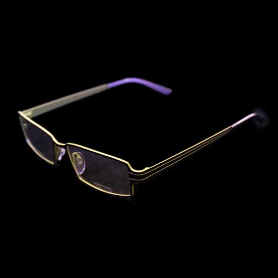 The men's optical frame features rectangular-shaped lens frames with notched accents on the temples. The nose pads and ear pads are covered with soft materials for comfortable wear. This optical frame is delicately crafted to give a polished finish.