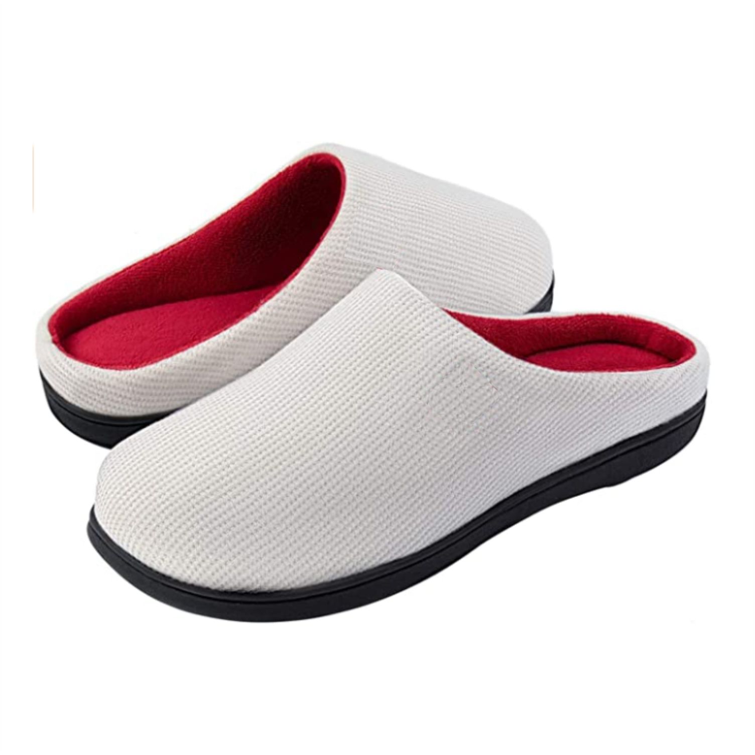 Sturdy rubber sole lets you step outside the house to grab the mail or walk the dog without switching shoes. Non-marking and noiseless on both tile and hardwood floors.