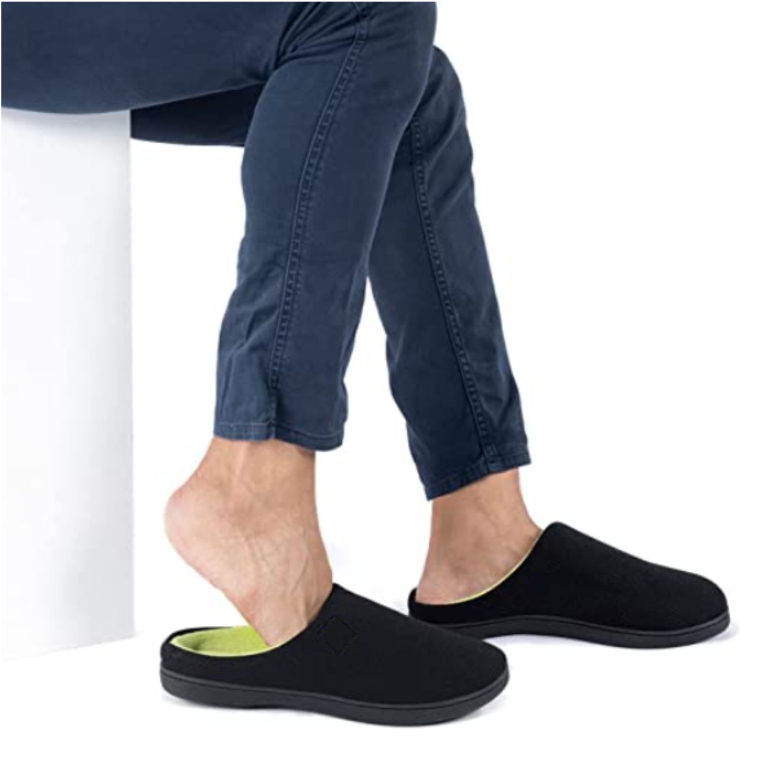Memory foam insole conforms to the contours of your foot for pillow soft comfort; pamper yourself after a long day at work, or that hard working husband or Dad in your life by giving his tired feet a well deserved rest.