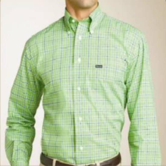 This long-sleeved woven shirt features banded cuffs, a button-down placket and collar. The classic style is embellished with an embroidered logo at the chest. The allover checker design in bright color is perfect for gentlemen who want to look fresh and smart.