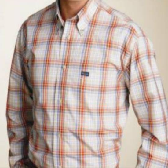 This long-sleeved woven shirt features banded cuffs, a button-down placket and collar. The classic style is embellished with an embroidered logo at the chest. The allover checker design in subtle colors is perfect for gentlemen who are looking for a relaxed style.
