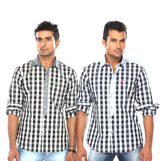 Featured here is a men's casual shirt designed in eye-catching plaid patterns. Subtle contrasting detail decorates this shirt on the collar and the front placket. This charming shirt comes with a slim fitting that flatters the male body.