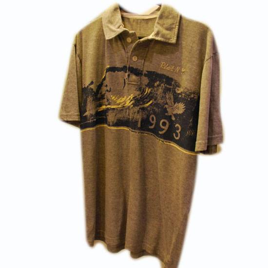 This men's polo shirt comes with a laydown collar and a 2-button placket. The chest has printed patterns of eagles. This polo shirt makes a must-have item for casual meeting with friends.