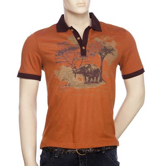 Displayed here is a men's polo shirt made of organic cotton jersey. It is characterized by a rhino print for added class and style. Add this short-sleeve one to your polo shirt collection.
