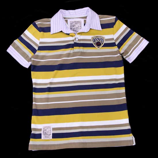 This is a short-sleeve polo shirt with a horizontally striped pattern. It is made of high-quality cotton to boost a comfortable touch. Keep young men trendy and smart with this casual polo shirt.