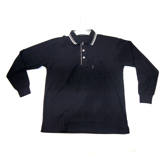 Featured here is a men's polo shirt with long sleeves. The black polo shirt demonstrates a point collar with three-button front closure. This polo shirt is a great addition to your fashion wardrobe.