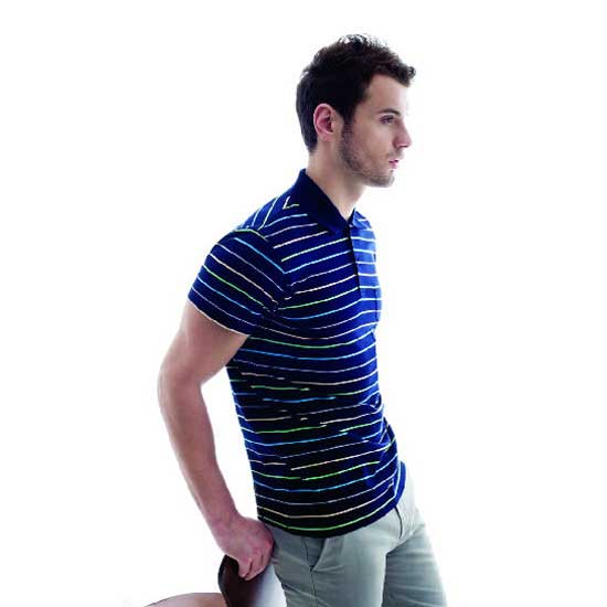 This is a men’s polo shirt that is made of 100% cotton for gratifying wearing comfort. The allover striped patterns add a touch of style to the whole piece. This polo shirt is finished with a classic point collar and short sleeves.