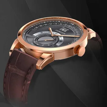 This is a men's quartz analog watch boasting a classic and elegant design. It features a round case in rose gold made of quality stainless steel. The brown watch bands matches well with the case for a perfect finish.