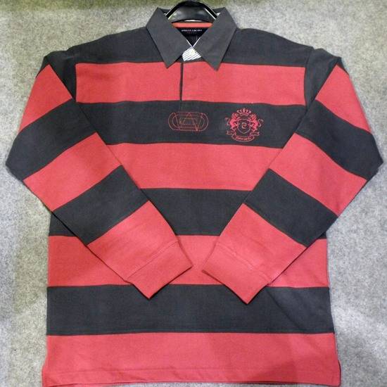 The stylish men's long-sleeved rugby shirt features topstitching on the French placket. It comes with allover striped patterns in an eye-catching way. The banded cuffs ensure a flattering fit and exceptional comfort.