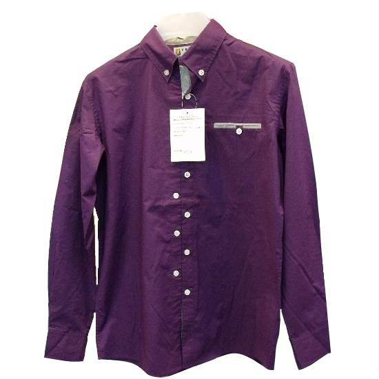 This men's shirt features unique zig-zag button front styling and a point collar. It also has a buttoned chest pocket and long sleeves with barrel cuffs. This purple-colored piece is perfect for men who want to impress people with a unique style.
