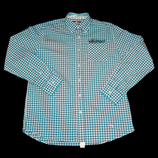 This featured shirt is available in a color combination of teal and white. The checked patterns style up the shirt with an energetic vibe. The pocket on the left chest brings a playful twist.