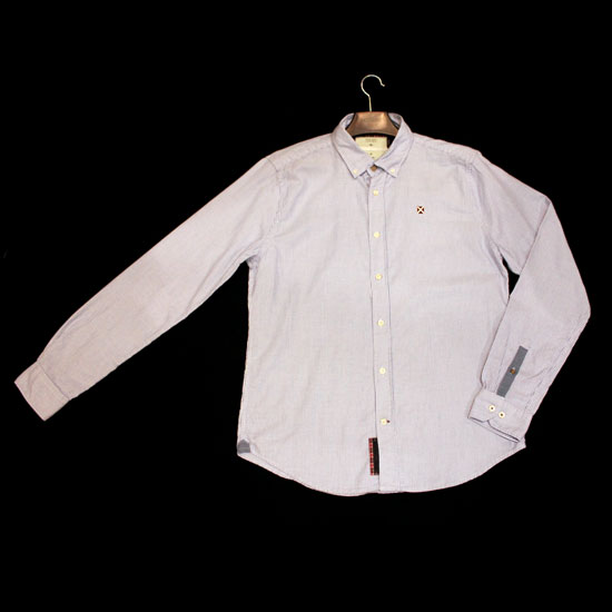 This long-sleeved men's shirt features a beautiful lilac color. Button detail on the collar, placket and cuffs lends a touch of sophistication to the design. Subtle embellishments in wine red add extra detail to this garment.