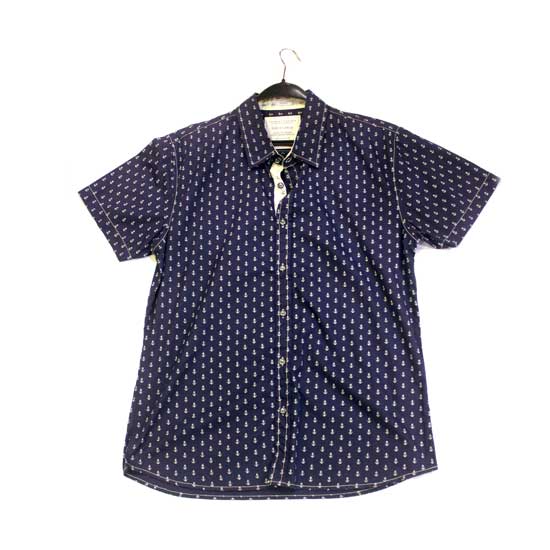 This men’s shirt is made of 100% cotton for extra wearing softness and comfort. The men's shirt is designed with a button-up front, a point collar and short sleeves. The overall raindrop print is added for a decorative touch.