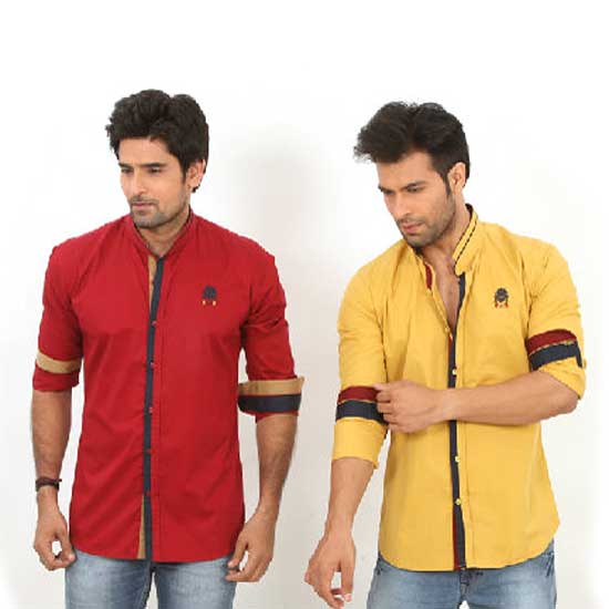 This men’s shirt is made of 100% cotton, which ensures wearing comfort. This eye-catching shirt comes with delicate embroidery in cuffs and collar for an elegant touch. There are two designs with bright colors for your selection.