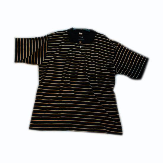 The men's polo shirt comes with short sleeves and a front-button closure. The black and white stripe patterns add a touch of style. This polo shirt is an ideal piece of casual wear for weekends and recreational events.