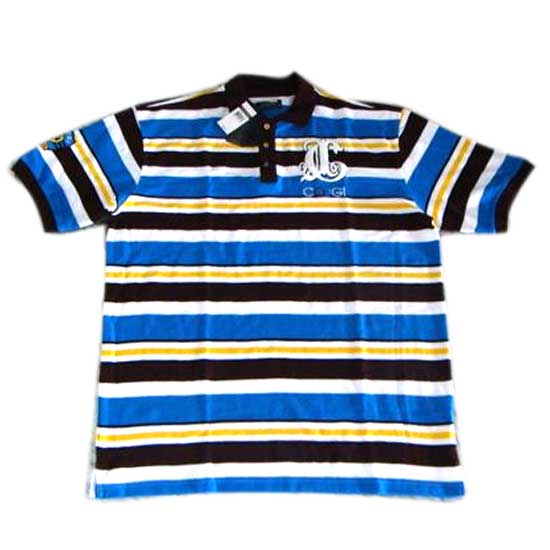 This is a men’s polo shirt coming with horizontal stripes. The eye-catching colors of sharp yellow, white, black and blue make the polo shirt a fashionable piece. This polo shirt goes well with jeans for a smart casual look.