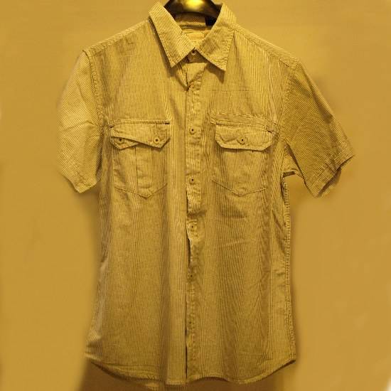 This stylish short-sleeve shirt comes with a laydown collar with full button-up front. It features all-over vertical stripe patterns in white and gray color. The buttoned flap closure on the chest pocket showcases a touch of uniqueness. Add style to your casual wardrobe with this fashionable shirt.
