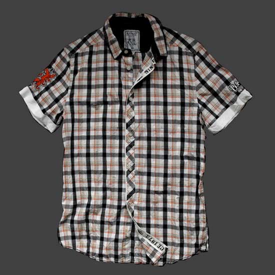 The shirt features a round-hemline and a pair of rolled short sleeves. The grid patterns in matching black and orange showcase an extra touch of style. This men's shirt makes a pretty way to enhance the casual wear wardrobe.