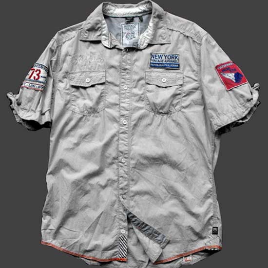 The men's shirt features a buttoned closure and a pair of short sleeves. It is highlighted by colorful badges and patched pockets for a decorative touch. This shirt surely will enhance your fashion closet with its pleasing design.