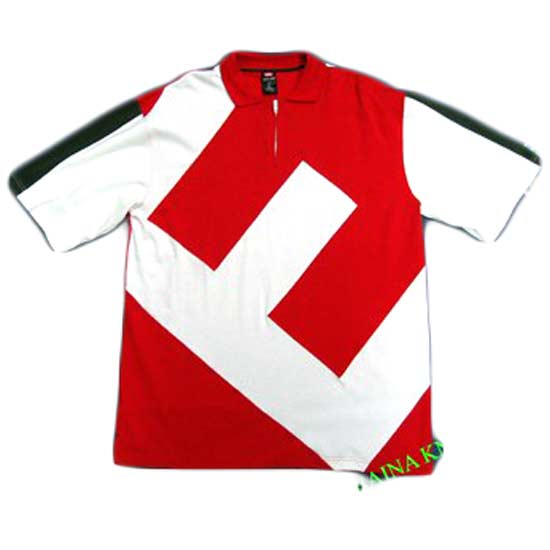The men's sports T-shirt has short sleeves. It comes in a red and white color construction to give a smart-looking appearance. This T-shirt makes a great outfit item for sports and recreational activities.