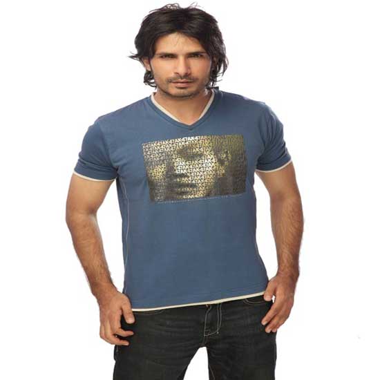 The men's T-shirt comes with a V-neckline and contrasting hemlines. It showcases a screen-printed 3D pattern. This T-shirt is quick-drying and it has built-in micro capsules that release fragrance when rubbed against the body.